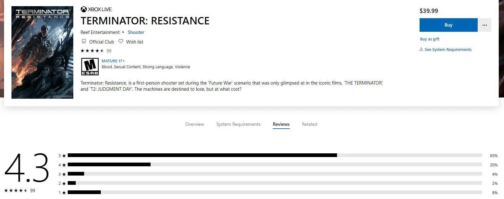 "Unexpected gem that I almost missed because it got a 4 out of 10 on various sites. (...) it's one of the better games I've played in recent memory. Story-wise if you are a fan of Termiantor, it's amazing. I would give this game a solid 8 out of 10".